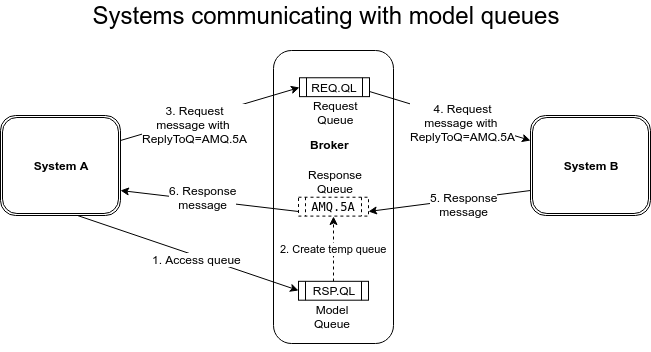 You can use one of the following:One system obtains a temporary queue based on a model queue. It puts messages onto a request queue with the ReplyToQ set to the temporary queue. Another system consumes these messages and puts responses onto the temporary queue that was in the ReplyToQ field, which the first system consumes. If our goal is to test the system-under-test in isolation, we must record these interactions in order to replay them.