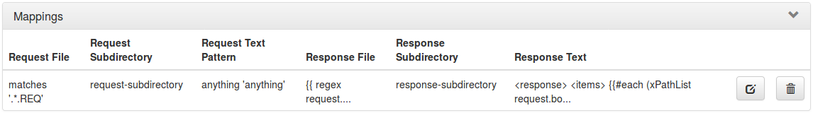 | matches regex | matches | Check that the received request file contents matches the regexp specified in the mapping |